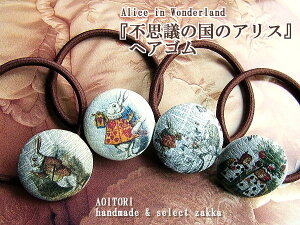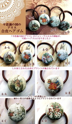 《メール便OK》【セレクトアクセサリー 122】不思議の国のアリス ヘアゴムA/ジョン・テニエルのアリスの挿絵を合皮にプリントしたヘアゴム 4種類【アリス雑貨】【RCP】【アリス・イン・ワンダーランド】【白うさぎ】