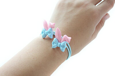 ★春夏新作★2本セットヘアゴム◎ラメ付きうさ耳パーツデザイン子供 パーツ 可愛い ヘアアクセサリー幼稚園 小学校 保育園 ラメ ヘアゴム キッズ うさぎ うさ耳